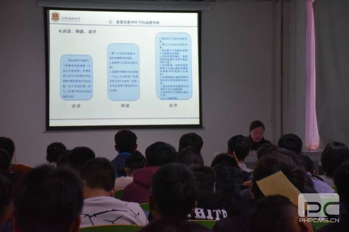 新生教育讲座共分九大部分,为新生详细介绍了学分制、课程类型、选课、成绩考核、考试、重修、创新学分、公共选修课、毕业条件等制度,让学生对于教学管理制度有了进一步了解,明白了今后学习的方向,以及学分、学分绩点的重要性。