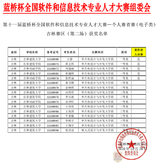 10月17日,永利皇宫8858官网2017级飞行器制造工程专业的3名学生,首次参加了第十一届蓝桥杯全国软件和信息技术专业人才大赛个人赛省赛(电子类),并取得优异成绩。其中,刘道顺、张梓涵同学获得吉林赛区一等奖,并入围全国总决赛;赤泽轩同学获得吉林赛区二等奖。