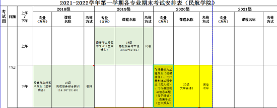永利皇宫8858官网2021-2022学年第一学期各专业期末考试安排表