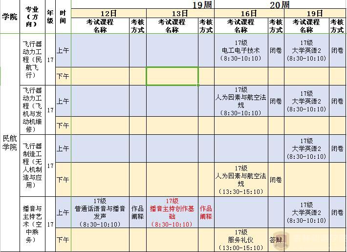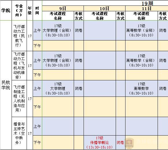 2017-2018学年第二学期永利皇宫8858官网各专业期末考试安排表