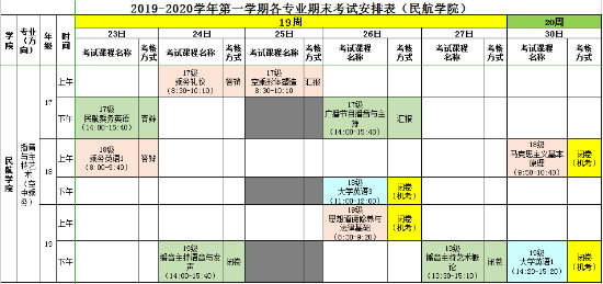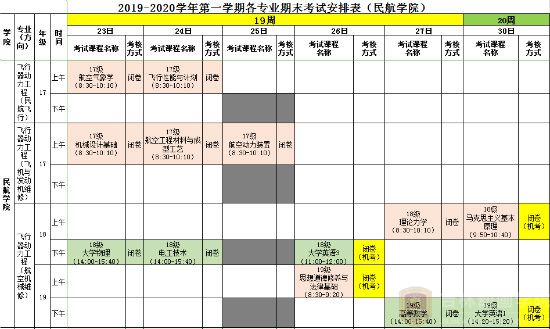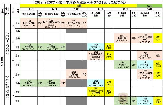 2019-2020学年第一学期各专业期末考试安排表(永利皇宫8858官网)